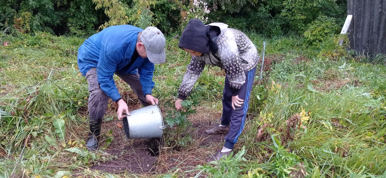 Посадили саженцы рябины.