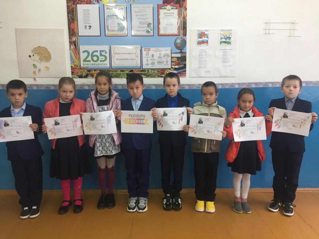 19 сентября, после внесения флагов России и Башкортостана и исполнения гимна РФ, мы продолжаем цикл внеклассных занятий "Разговоры о важном" Тема бесед на сегодня - «165-летие со дня рождения К. Э. Циолковского»
