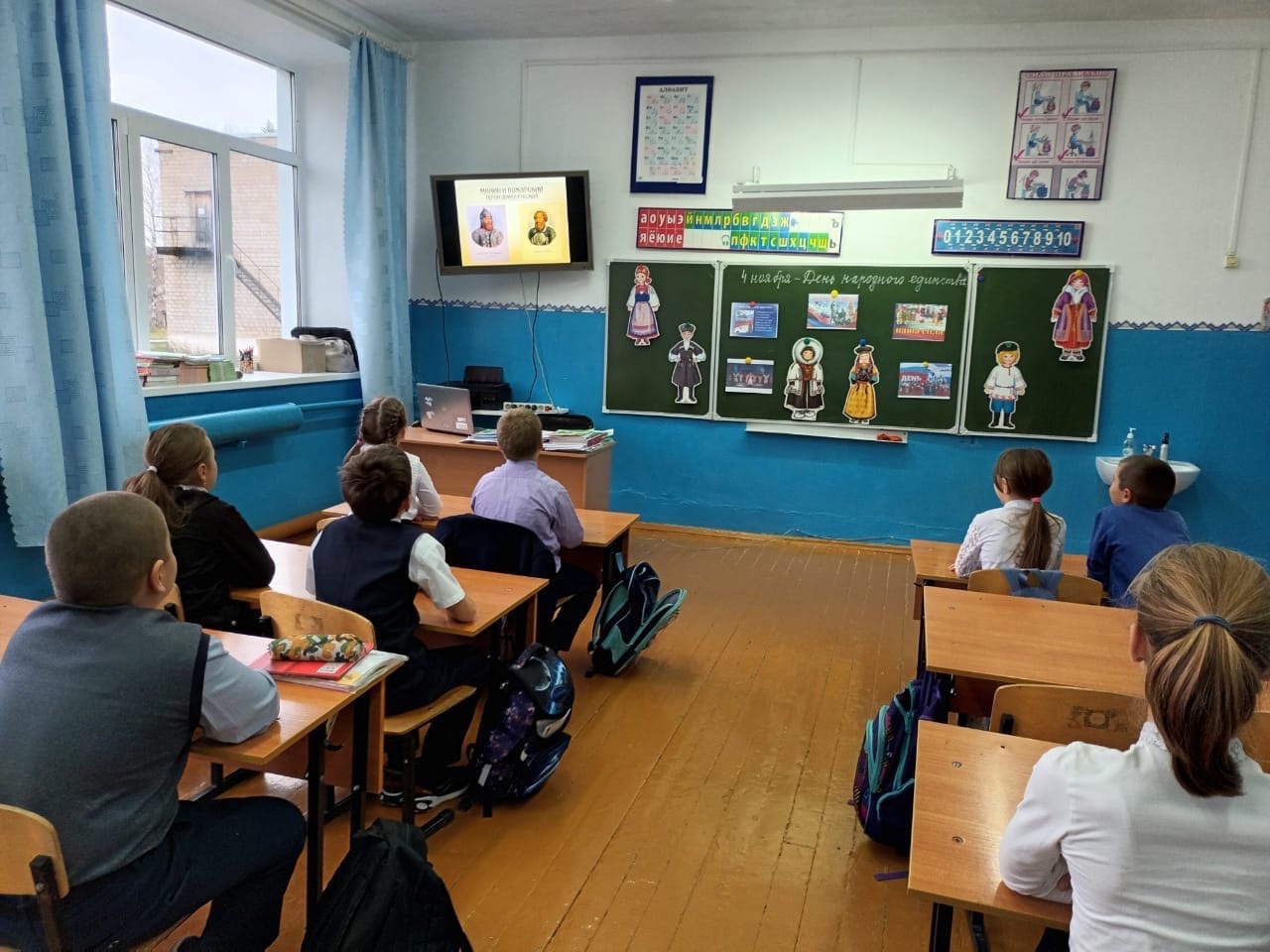 4 ноября наша страна Россия отмечает День народного единства. В преддверии праздника 26 октября в нашей школе проходили мероприятия, посвящённые этой дате. В доступной форме ребята знакомились с историей возникновения праздника, подвигами наших предков во имя независимости Родины. Мероприятия были разнообразные: с использованием презентаций, дидактические игры "Символика России", беседы " Что мы можем сделать с вами для единства нашей страны", "За что ты любишь своё село", тренинги " Вместе- мы сила! " и другие.