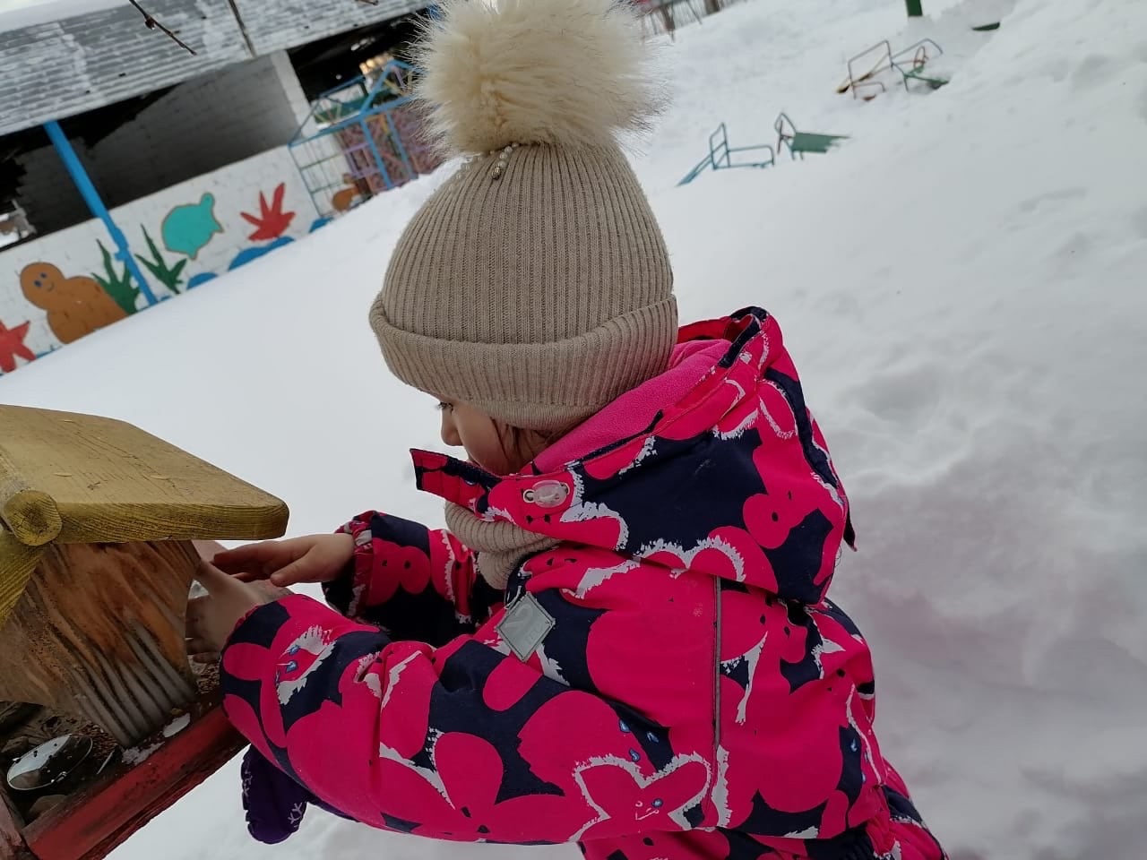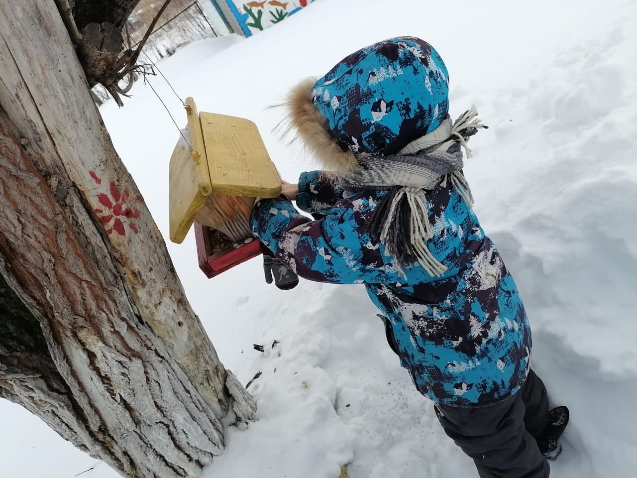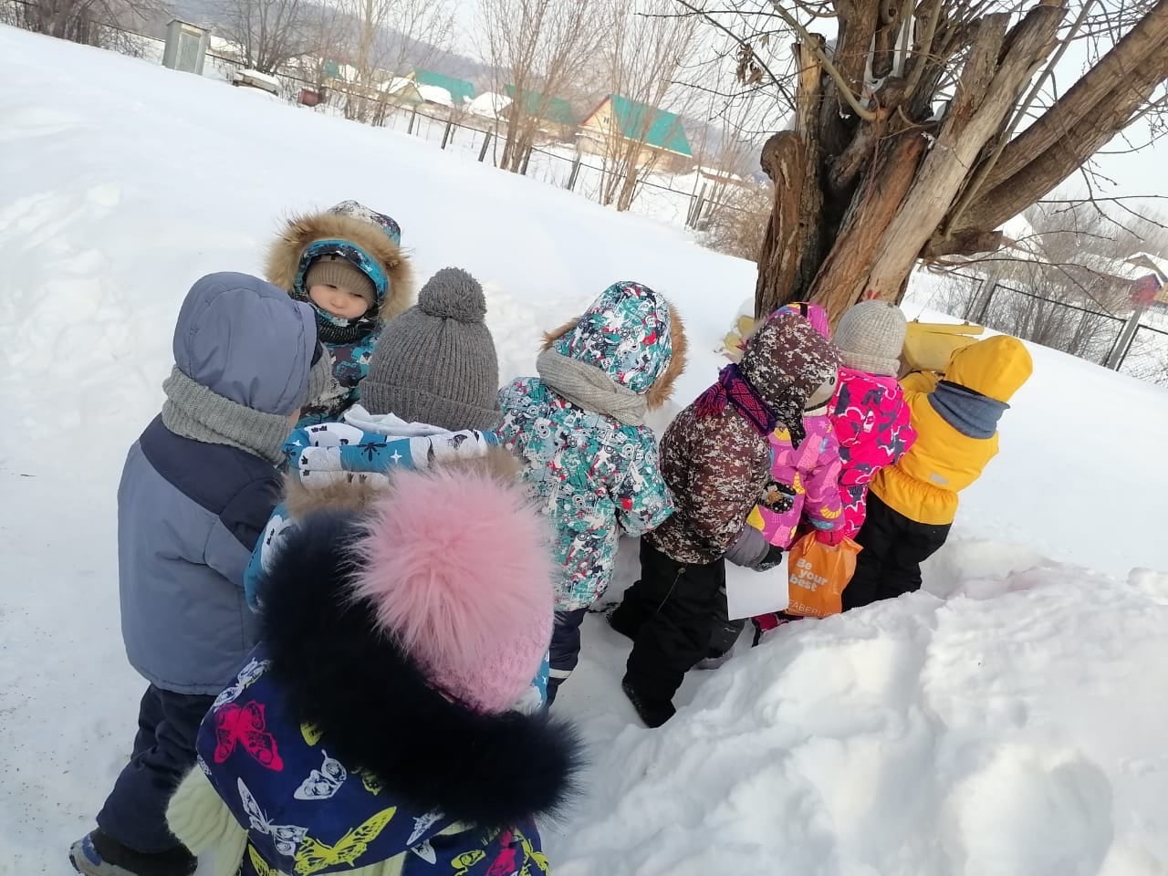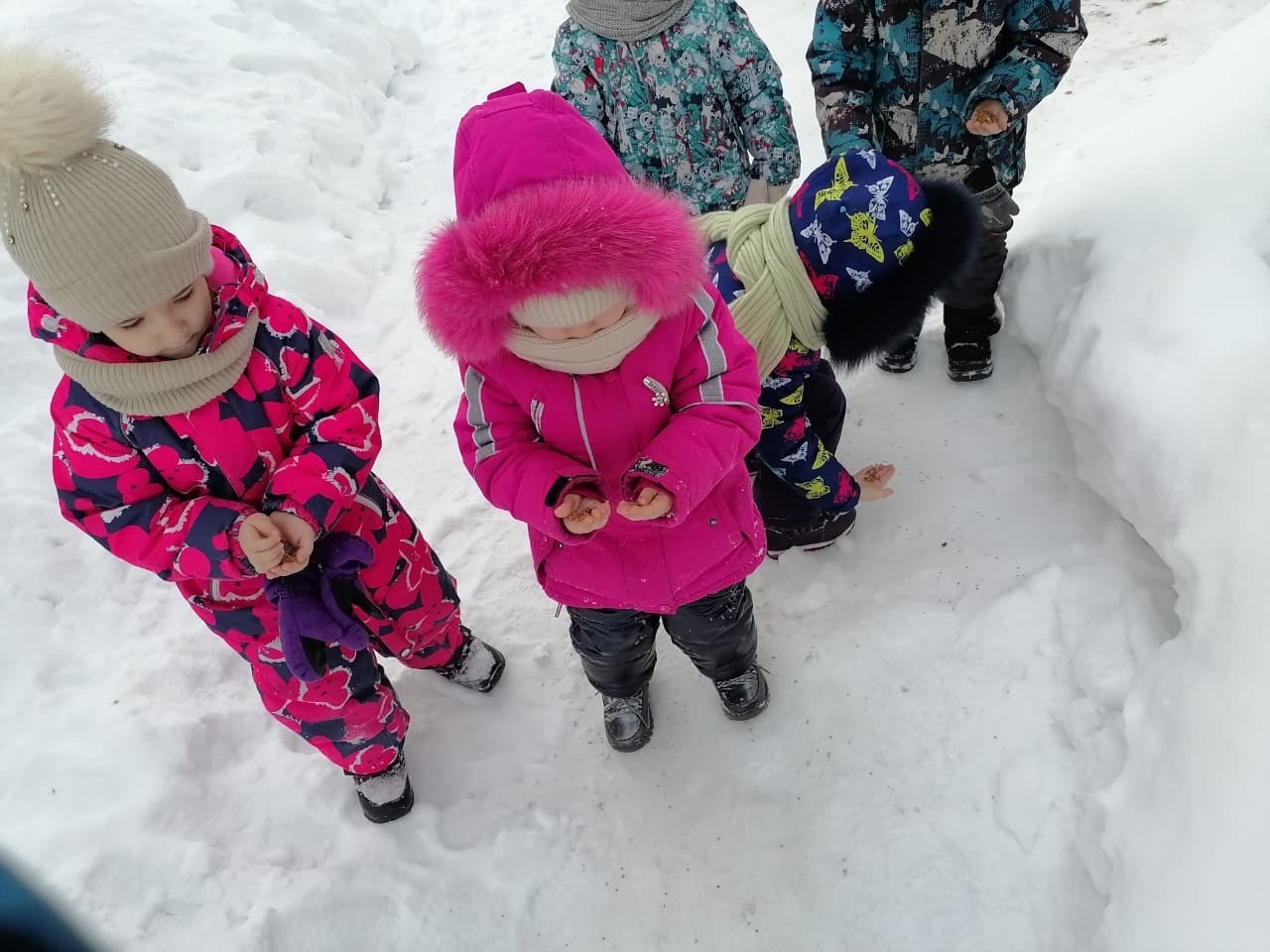 Так и младшая группа "Звездочки" вместе со своим воспитателем Гиззатуллиной Айсылу Батыргалеевной ежедневно подкармливают птиц, подсыпают им корм на установленные возле детского сада кормушки.